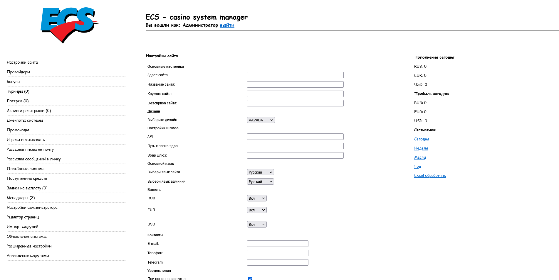 Скрипт казино работает на движке ECS