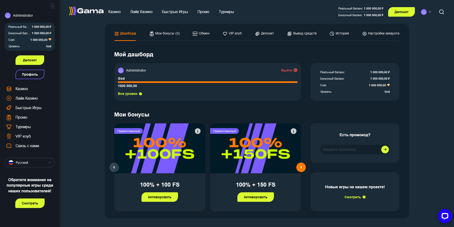 Вы сможете подключить партнёрскую программу для вашего казино с помощью специального модуля.